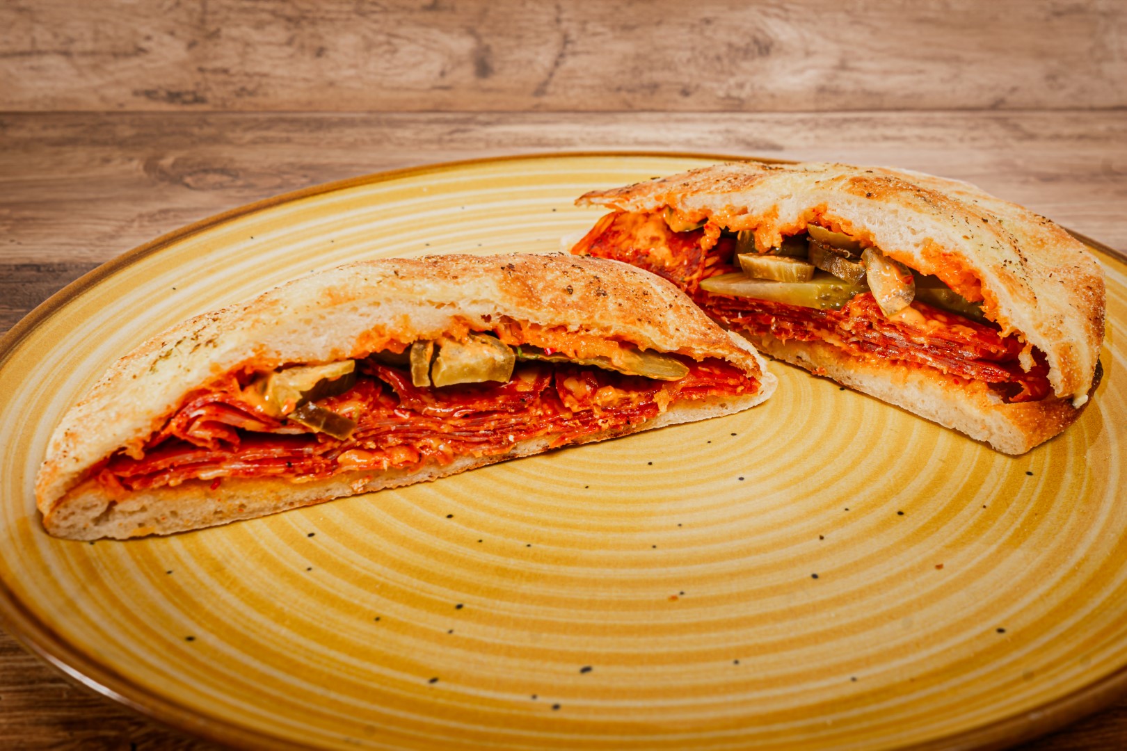 Panini,chorizo,maioneza picante,castraveti murati,ardei jalapeno murati